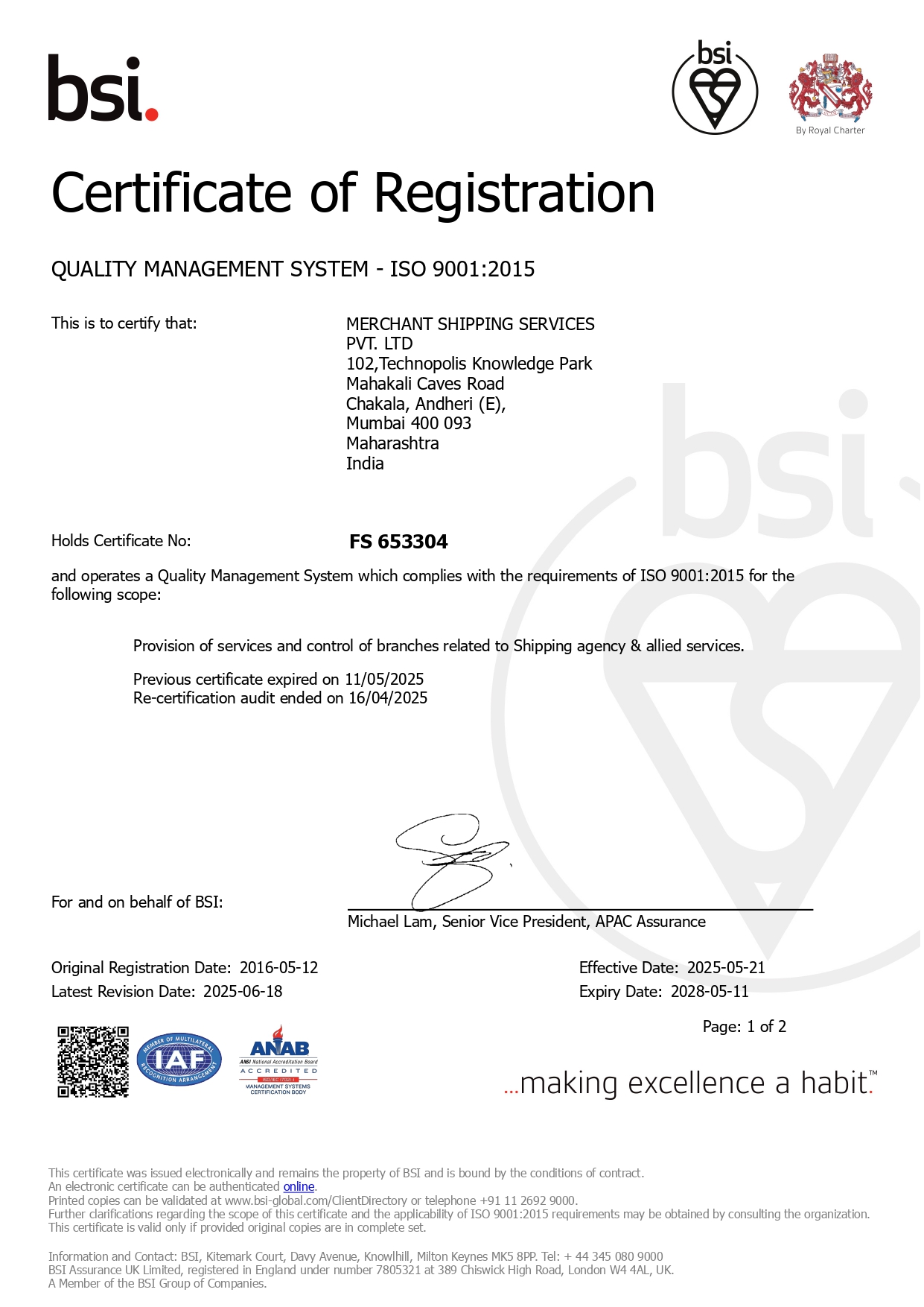 AT MERCHANT SHIPPING SINCE 1996, WE HAVE CHANNELED OUR EXPERTISE TO BUILD UP A STRONG AND STABLE SERVICE OFFERING